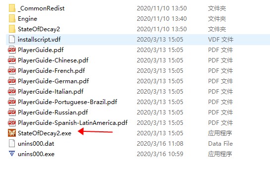 2、在根目录中找到StateOfDecay2.exe,双击它就能进入游戏了;