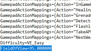 6、找到“ FieldOfView”字符串,并将数字更改为所需的FOV设置。