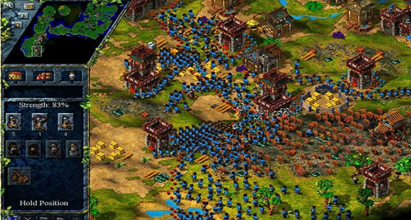 五、如果士兵的升级完毕,武器积累超过一百五十,空闲居民超过两百(后几关可多积累一些),胜利就基本上属于你了。在间谍侦察后,盔甲鲜明的武士前仆后继投入血战,很有巷战的风格。目标是地方的守卫塔,战斗方式与一般即时战略游戏无异,各人可选择不同的战法。