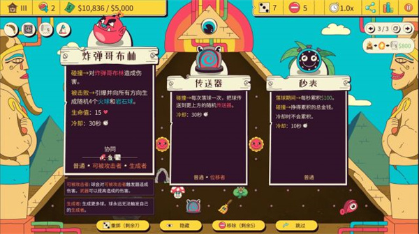 比如你可以给弹珠挂上武器组件,这样它对于需要击败的“敌人”可以造成个多的伤害(血量打空能产生各种增益效果) 给弹珠挂上气球组件,它在触碰到底部之后会完成“触底反弹”飘起来。