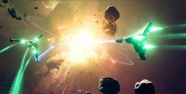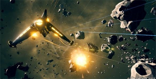 再来就是利用地形躲子弹,尽量避免在空旷的场地战斗,不然很吃亏。宇宙中很多巨石和残骸带都对战斗非常有利。个人最喜欢的是那种中间有洞的巨型小行星(中间被掏空的,顺便说下这种小行星里面通常会有水晶矿和道具)。