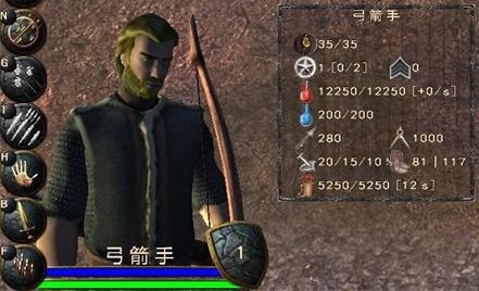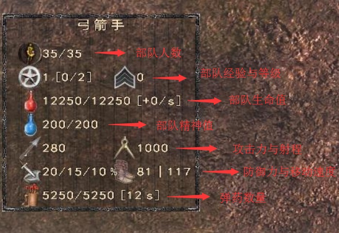 相较于近战部队,在属性上新添了射程以及箭矢数量的设定。