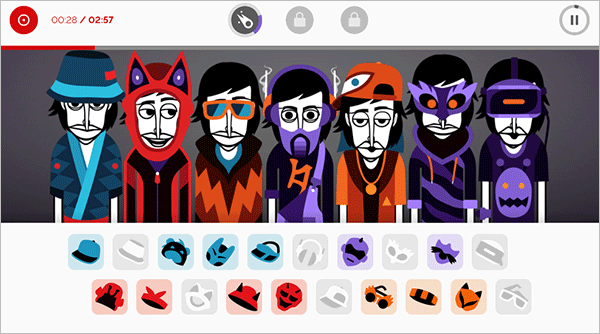 节奏盒子(Incredibox) 是由 So Far So Good 打造的一款创意音乐模拟游戏。它让你轻松化身音乐制作人,只需将代表不同声音如鼓点、贝斯、人声、特效的图标拖拽到人物身上,即可混合出节奏感爆棚的 Hip-hop、Pop、电音或巴西音乐等。
