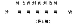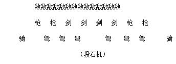 在排步兵时故意露出间系,肉搏战时敌方就会有人挤到间系之间,弩兵则故意排在步兵的间系之间,这样就有射击的机会。要注意的是这种方法前列的步兵压力比较大,希望他们够硬,或是有将军在一旁鼓舞