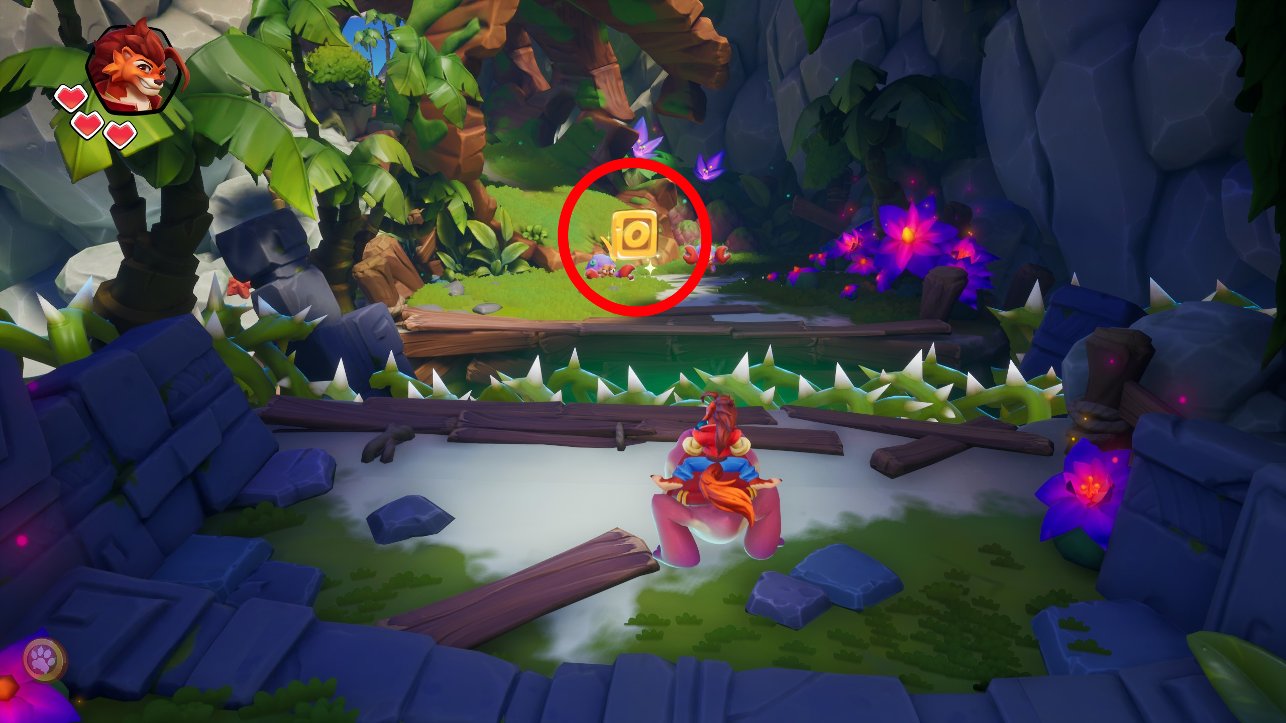 4、得到面板之后,前方有一个可以和箱子一起打破的地板,打破地板后,会看到一个派对礼盒。