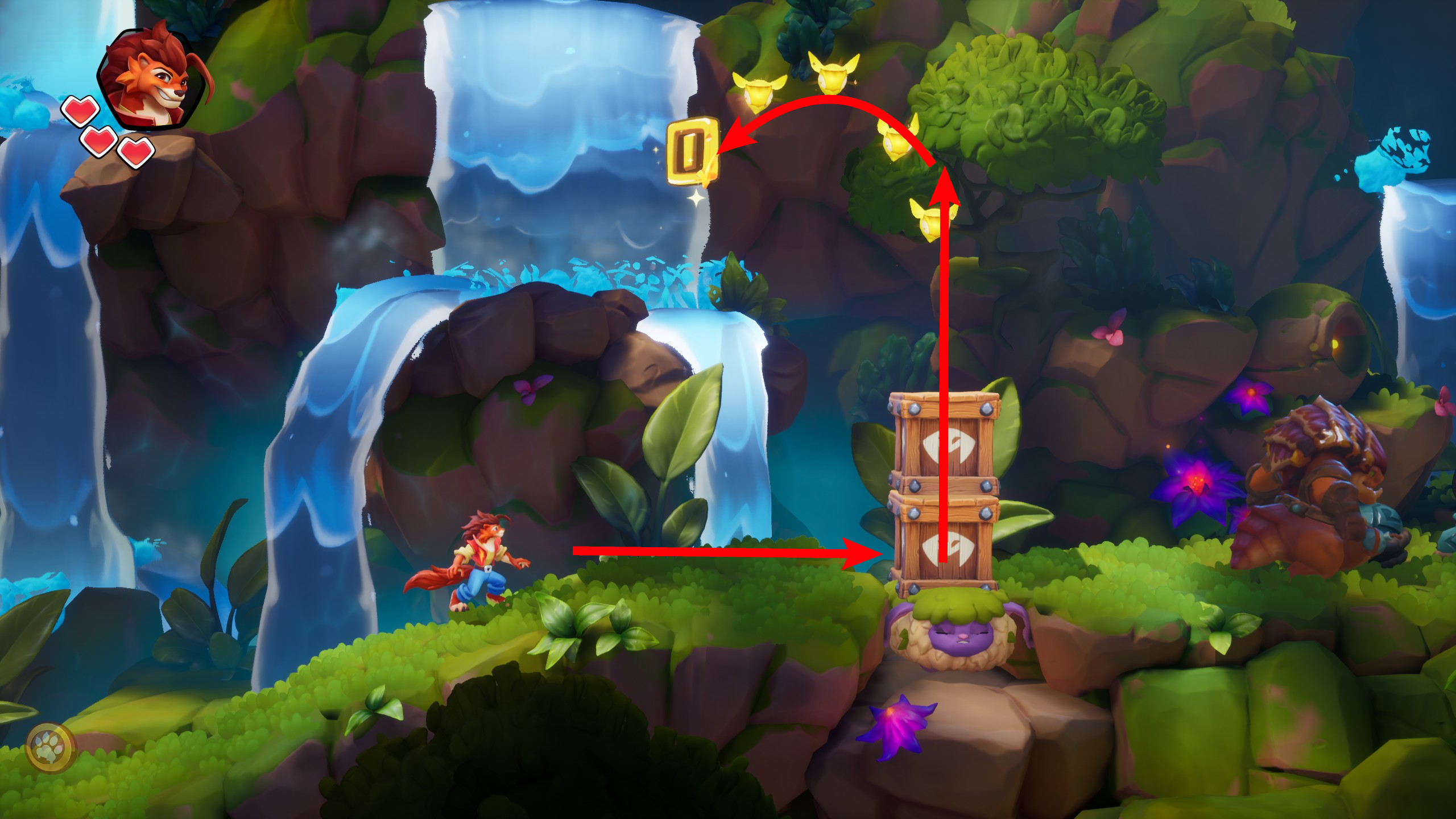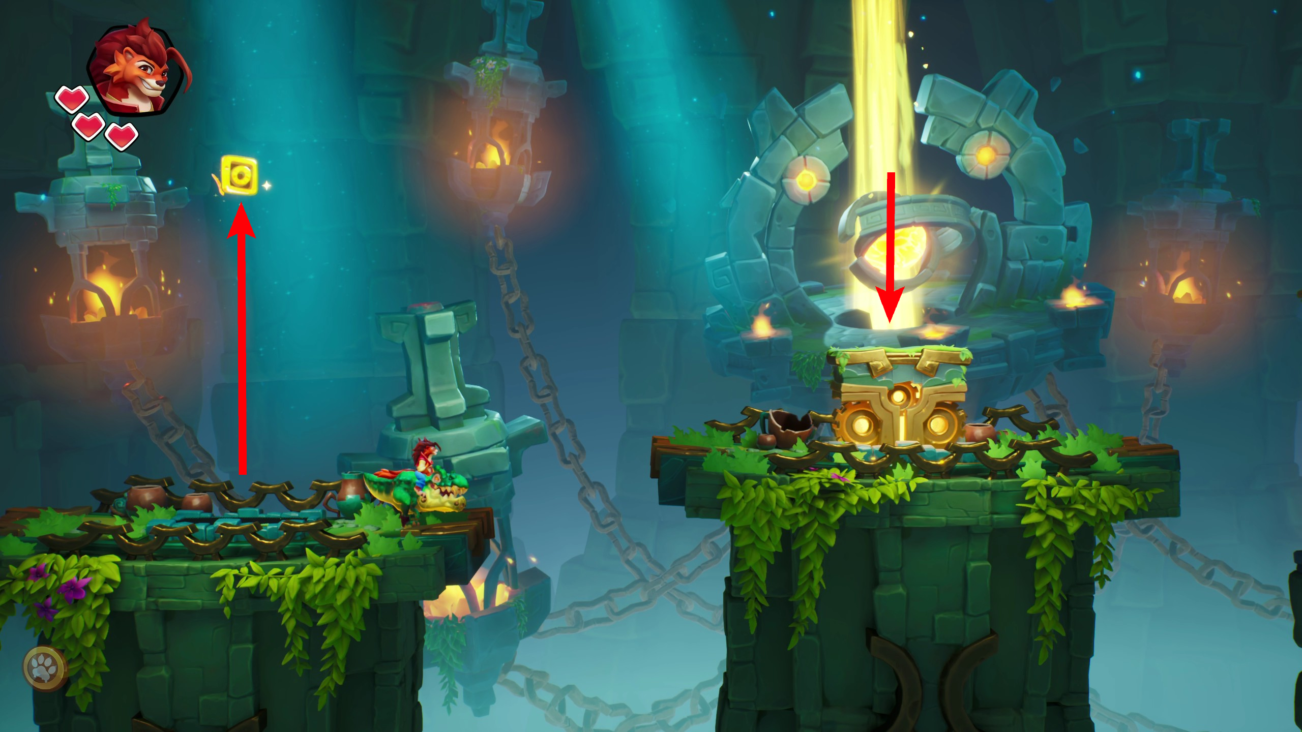 5、如果往上走并继续前进,会发现一个可以上下移动的脚手架。使用它向上走,将找到一个奖励关卡。