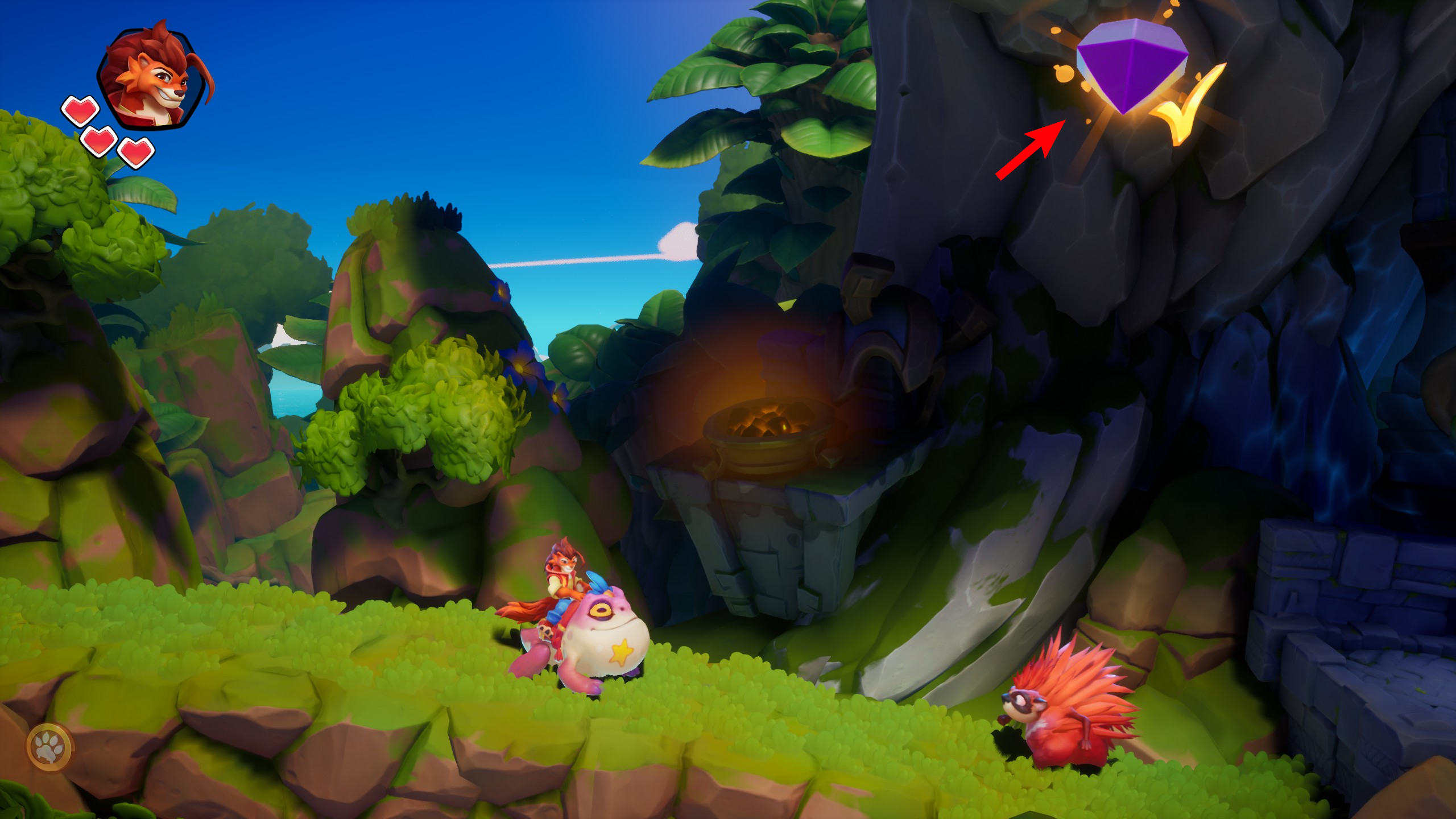 7、骑着青蛙向前走,会发现顶上有一颗钻石。