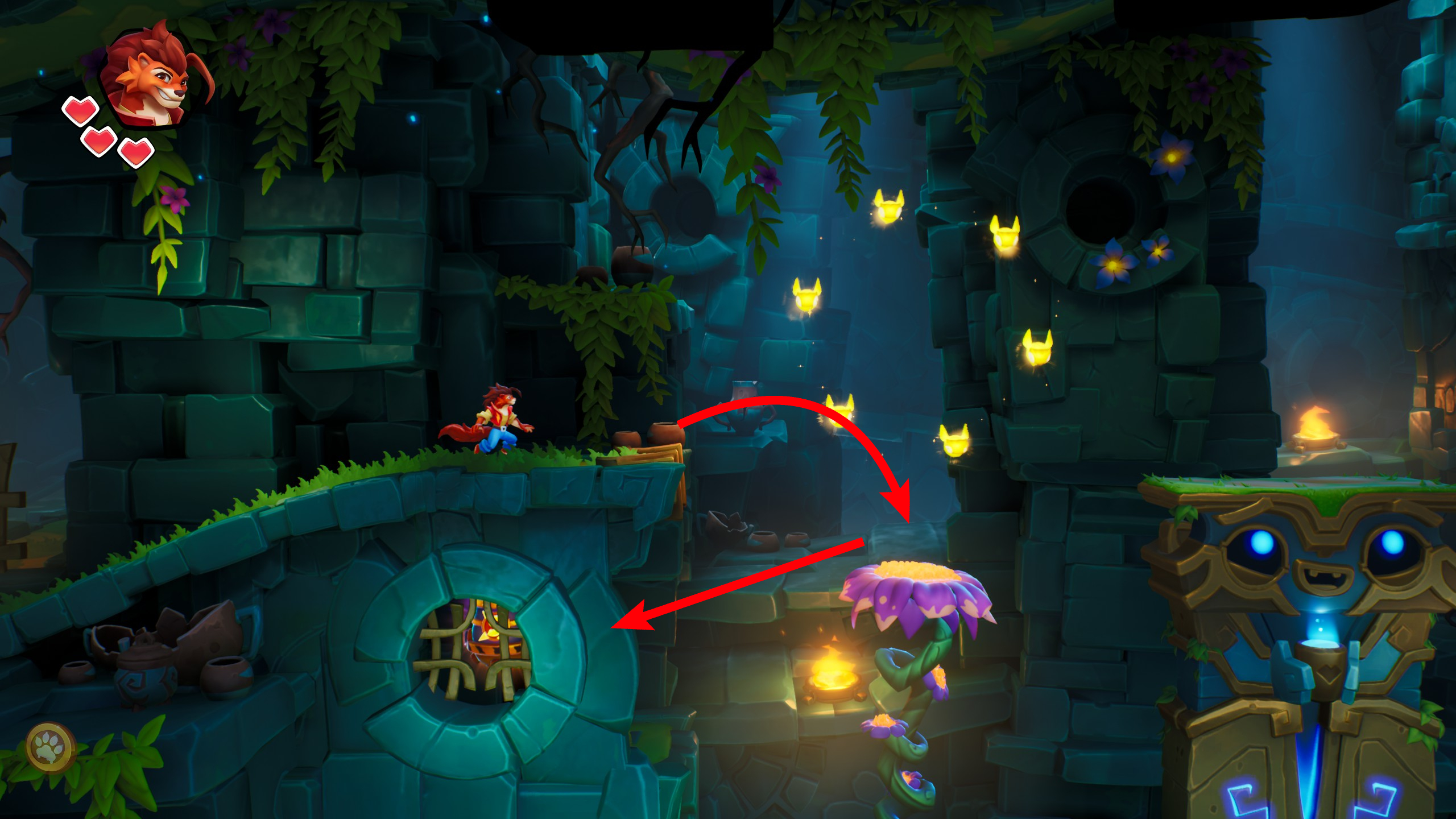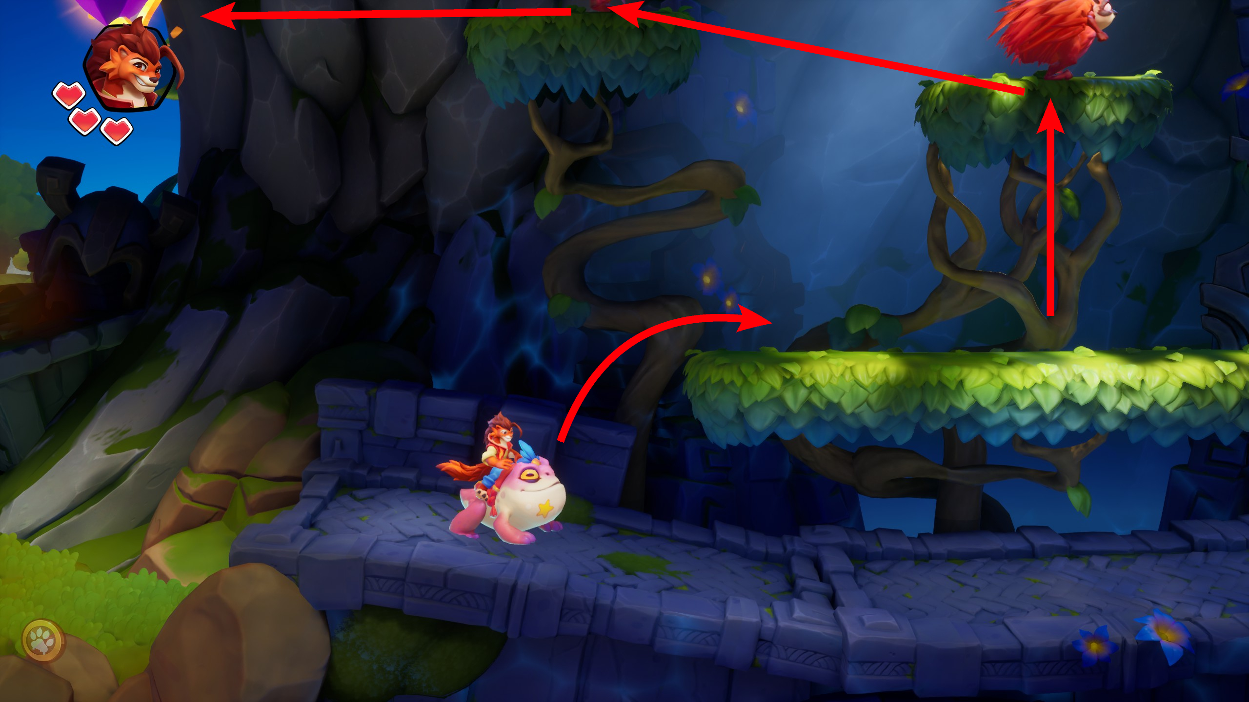13、当你到达花朵时,下面的奖励关卡即将开启。要小心脚,花朵会过一会就要塌了。