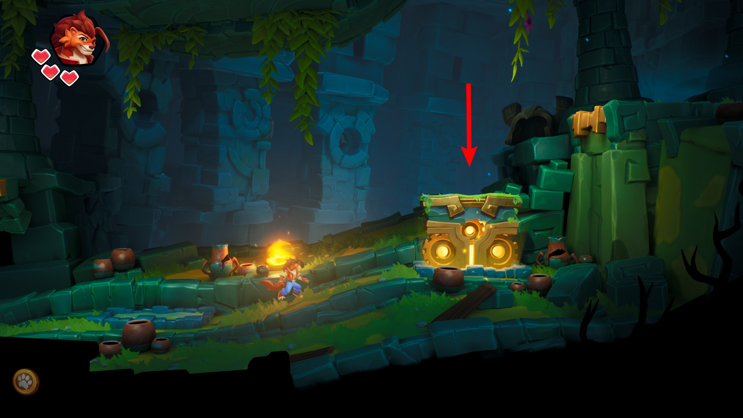 9、当按下开关可以前往后方时,在岔路口向右走,将到达奖励关卡。
