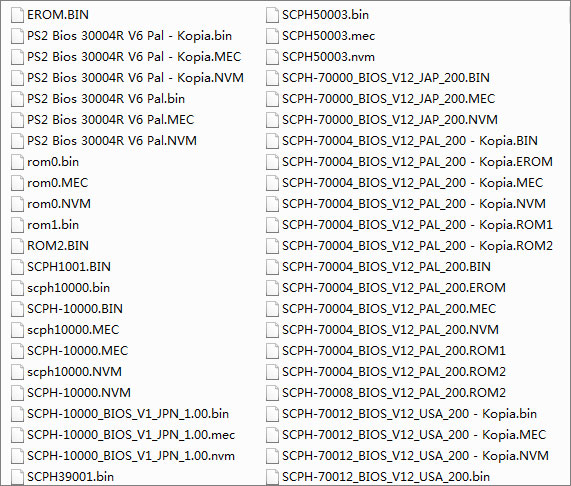PS2主机的BIOS文件,包含有所有PS2型号的BIOS,有日版/欧版/美版,为满足有些特殊游戏需要对应文件的需求。特此做成合集包,通样PCSX2模拟器也可以使用,导入相应文件加即可。