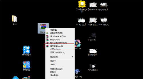 1、首先是下载bios文件右键解压到bios,然后呢进入bios文件夹里面。