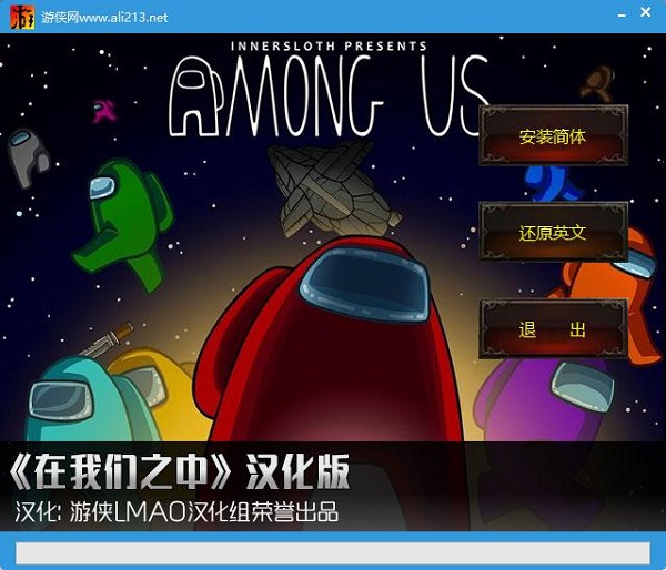 3、汉化完成后打开游戏是中文即汉化成功,如果想要恢复英文直接打开Among Us汉化补丁点击恢复即可