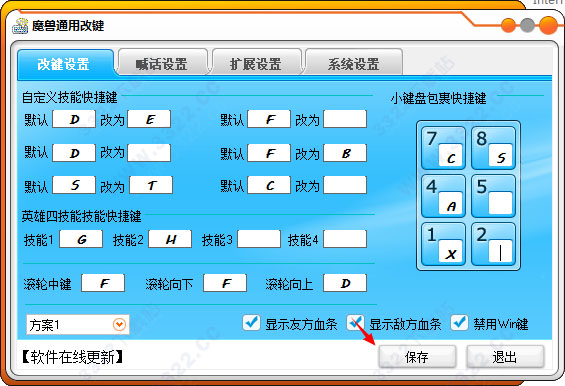 (3)改键功能进入游戏后自动启动,无需手动启动。当然前提是在软件中事先输入你要改的键,点击保存即可