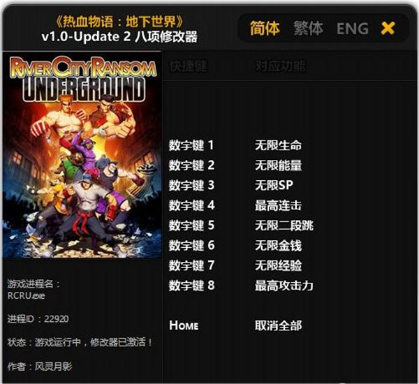 数字键 1 - 无限生命数字键 2 - 无限能量