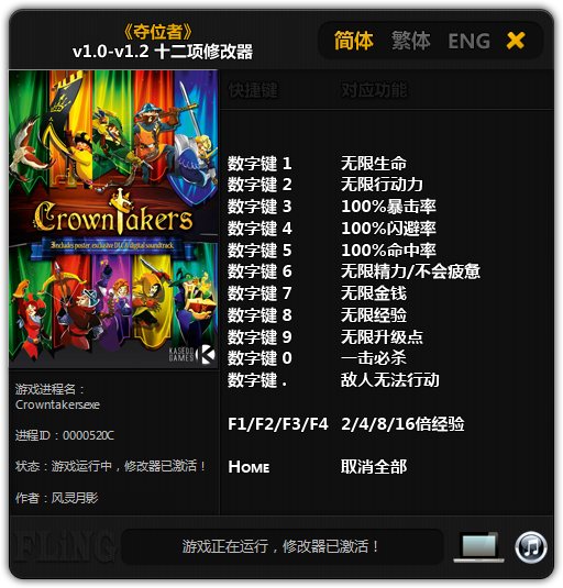 夺位者修改器是一款专为《夺位者》电脑游戏所打造的游戏辅助工具,一旦使用了这款修改器的玩家可以获得多种不同属性的跨越性强化,包括金钱、行动力、经验、暴击率等属性的加强与修改,玩家可根据自己的需求决定是否开启,带你享受不一样的游戏体验。