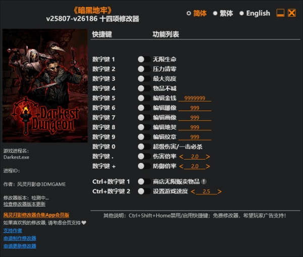 暗黑地牢修改器按键介绍