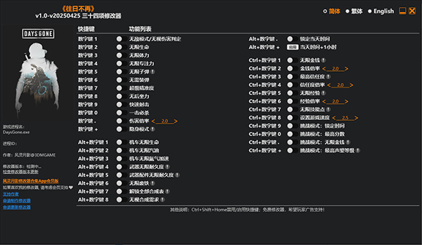 往日不再修改器是专门为针对往日不再这款游戏推出的辅助,利用它玩家可以修改超多的游戏属性,以得到更好的游戏体验,比如修改为无敌模式、无限生命、无限体力、无限子弹、无需装弹、一击必杀、无限金钱等许多项修改功能,帮助玩家降低游戏难度,欢迎下载使用!