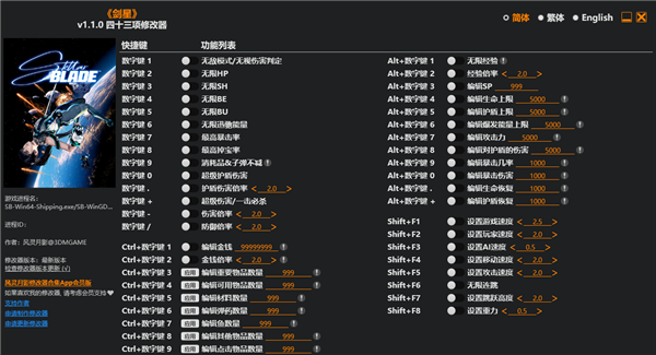 剑星修改器是一款专门为《剑星》游戏所推出的游戏数值修改器,它内置四十三项不同的修改功能,玩家将拥有无限迅驰能量、超级护盾伤害、最高暴击率、无敌模式等设定,还可以编辑生命上限、弹药数量、爆发能量上限等操作,帮助玩家在刀剑、机关枪与激光武器的近战中对抗摧毁地球的恶势力奈提巴,夺回地球,拯救人类。