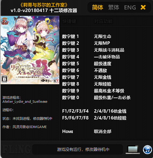 莉蒂与苏尔的工作室修改器是风灵月影专为《莉蒂与苏尔的工作室》电脑游戏所打造的一款多功能修改器,该修改器支持一键实现开启超级伤害/一击必杀、无限战斗消耗品、2/4/8/16倍经验、无限生命等功能,玩家进入游戏后通过指定热键即可快速开启,简单快捷高效,大幅度降低游戏所带来的难易程度,帮助玩家轻松解决战斗!