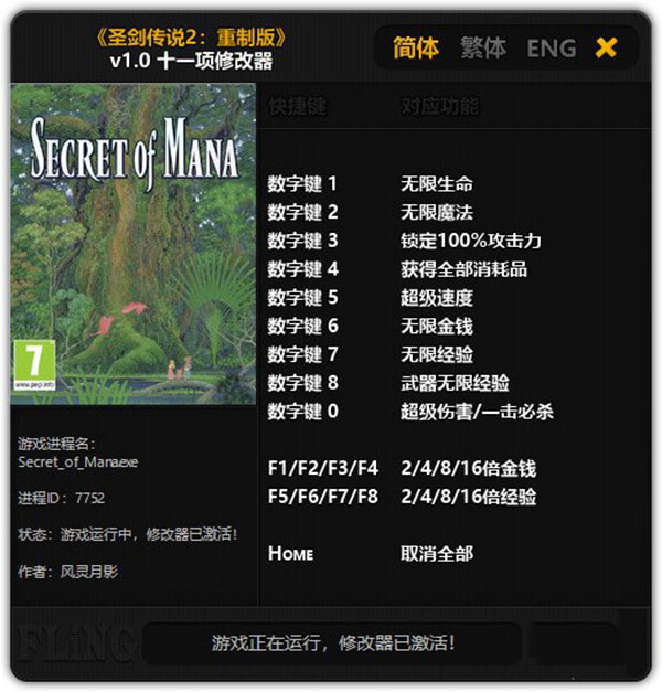 《圣剑传说2》最初是1993年SE发行在超任(SNES)平台的一款经典RPG游戏,除了进行了3D画面重制,还在游戏内容上针对现世代平台进行了优化,增加了对话场景,重新收录编排了全部曲目,角色配有语音,可以选用日语/英语配音和字幕,支持本地多人(3人)分屏合作。游戏预购特典公布:PS商店预定会获赠特殊角色装扮和PSN头像,预购Steam版的玩家除装扮外还会获得可下载壁纸。建议零售价数字和标准版4800日元,收藏版13870日元。游戏将在9月的PAX WEST展会上开放试玩。修改器功能特点
