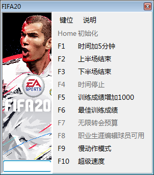 玩FIFA 20的时候,如果你觉得比赛节奏太快或者想掌控局势,这款MrAntiFun制作的修改器绝对是个神器。它功能真的挺全的,不仅能随意调整时间,比如让时间暂停或者直接加五分钟,还能解决那些让人头疼的预算问题,比如开启无限转会预算,让你在职业生涯里随心所欲地买球星。最让我觉得贴心的是,它甚至能编辑球员和开启慢动作模式,这对于想细细打磨战术或者欣赏精彩进球的玩家来说,简直是打开了新世界的大门。虽然游戏本身画质和动作已经很流畅了,但有了这个工具,那种掌控全场的感觉更爽了,完全能自定义属于自己的梦幻足球体验。FIFA 20修改器是由MrAntiFun专门针对游戏FIFA 20终极版研发制作的一款全多功能修改器,这个修改器功能非常的强大,可适用于FIFA20终极版本的修改器,包含各种主队和客队相关数值修改的内容,比如可以让时间加5分钟、上半场结束、下半场结束、时间停止、无限转会预算等十项修改功能,帮助玩家轻松掌控赛场,轻松获得最佳的游戏极致体验。FIFA 20作为一款由美国EA制作发行的足球体育类游戏,是人气系列《FIFA》系列最新的正统续作,本作采用了最新的游戏引擎开发,拥有顶尖的游戏画质,并且在本作中也新增了大量的新球员,游戏的动作也更为流畅,玩家可以随意组建足球队开启一场梦幻般的足球比赛盛宴。游戏采用Frostbite技术制作,以生动的方式呈现足球赛事的两种面貌:专业舞台令人神往的魅力,以及EA SPORTS VOLTA当中全新的逼真街头足球体验。 使用说明 1.先开游戏,再开修改器。 2.了解修改器使用说明。 3.开启修改器"初始化"项(如果没有初始化项则不用开启)。 4.使用修改项(无法开启查看修改器使用说明)。 5.键位功能里没有特别说明时,数字键非小键盘。 功能说明 Home 初始化 F1 时间+5分钟 F2 上半场结束 F3 下半场结束 F4 时间停止 F5 训练成绩+1000 F6 最佳训练成绩 F7 无限转会预算 F8 职业生涯编辑球员可用 F9 慢动作模式 F10 超级速度