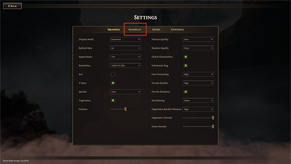 2、在“SETTINGS”界面,选择“GAMEPLAY”。