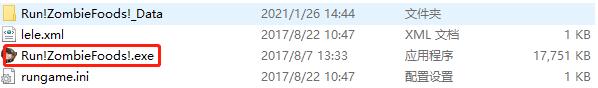 1、首先通过本站提供的压缩包文件进行解压(解压路径中最好不要用英文),期间你将看到图中所示的几个文件,双击运行“Run!ZombieFoods!.exe”便可成功进入游戏。