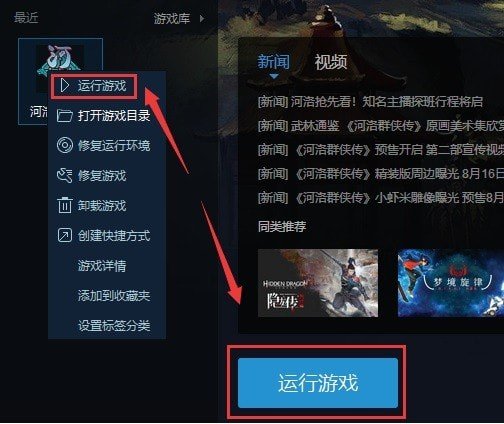 6、安装成功后,鼠标右键点击《河洛群侠传》弹出功能菜单,并点击“运行游戏”
