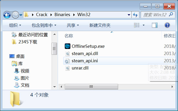 3、然后将crack文件夹下的破解补丁OfflineSetup.exe移动覆盖到原游戏安装目录位置