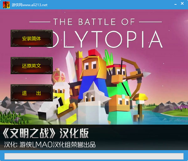 2、打开“The.Battle.of.Polytopia.CHS.PATCH.V1.0-ALI213.exe”文件后点击安装简体进行汉化即可。