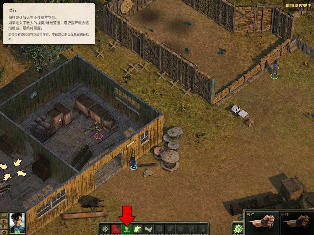 7、点击屏幕下方的“人头”标识,可以进入潜行状态,蹲下效果更佳。