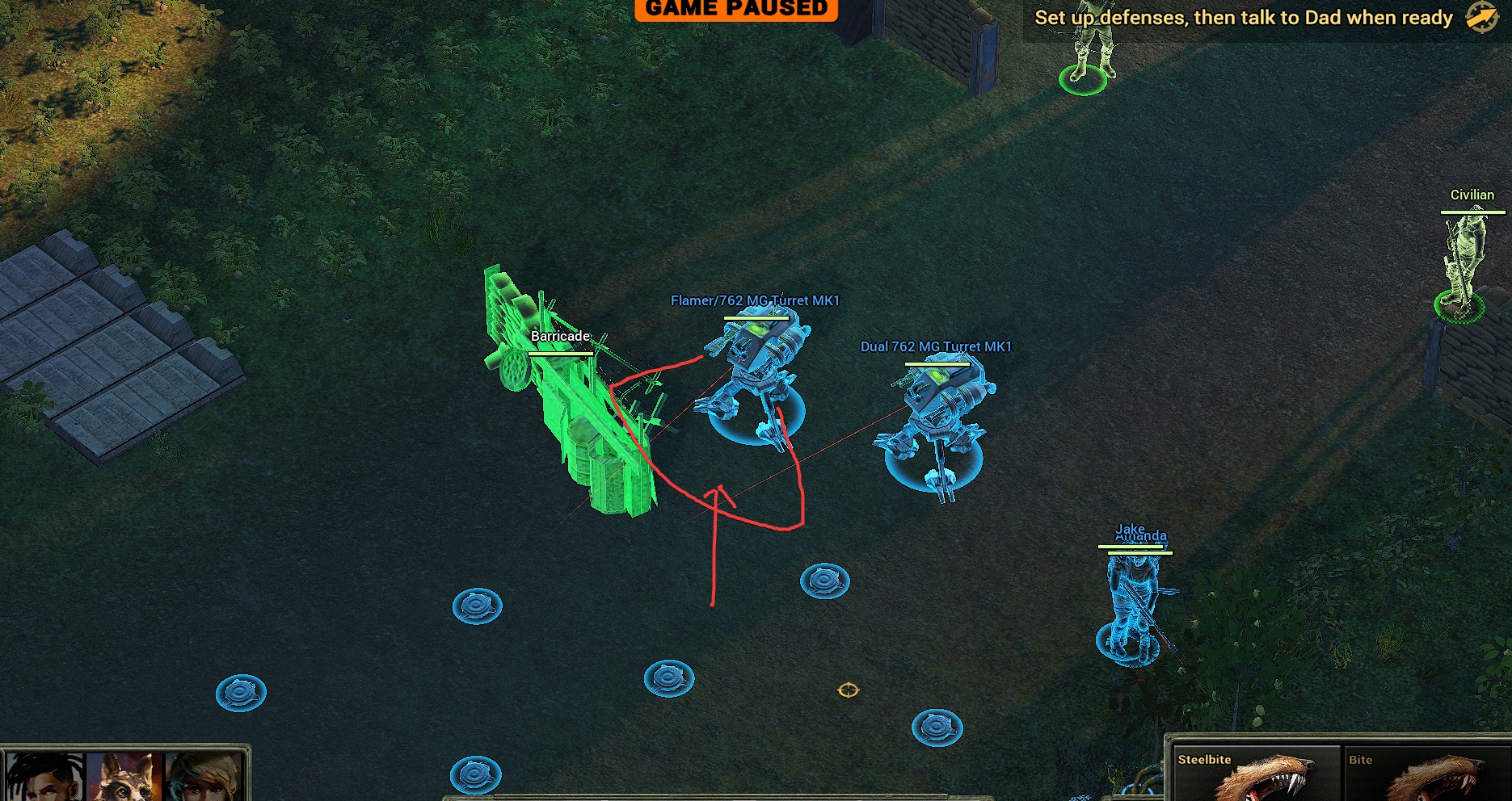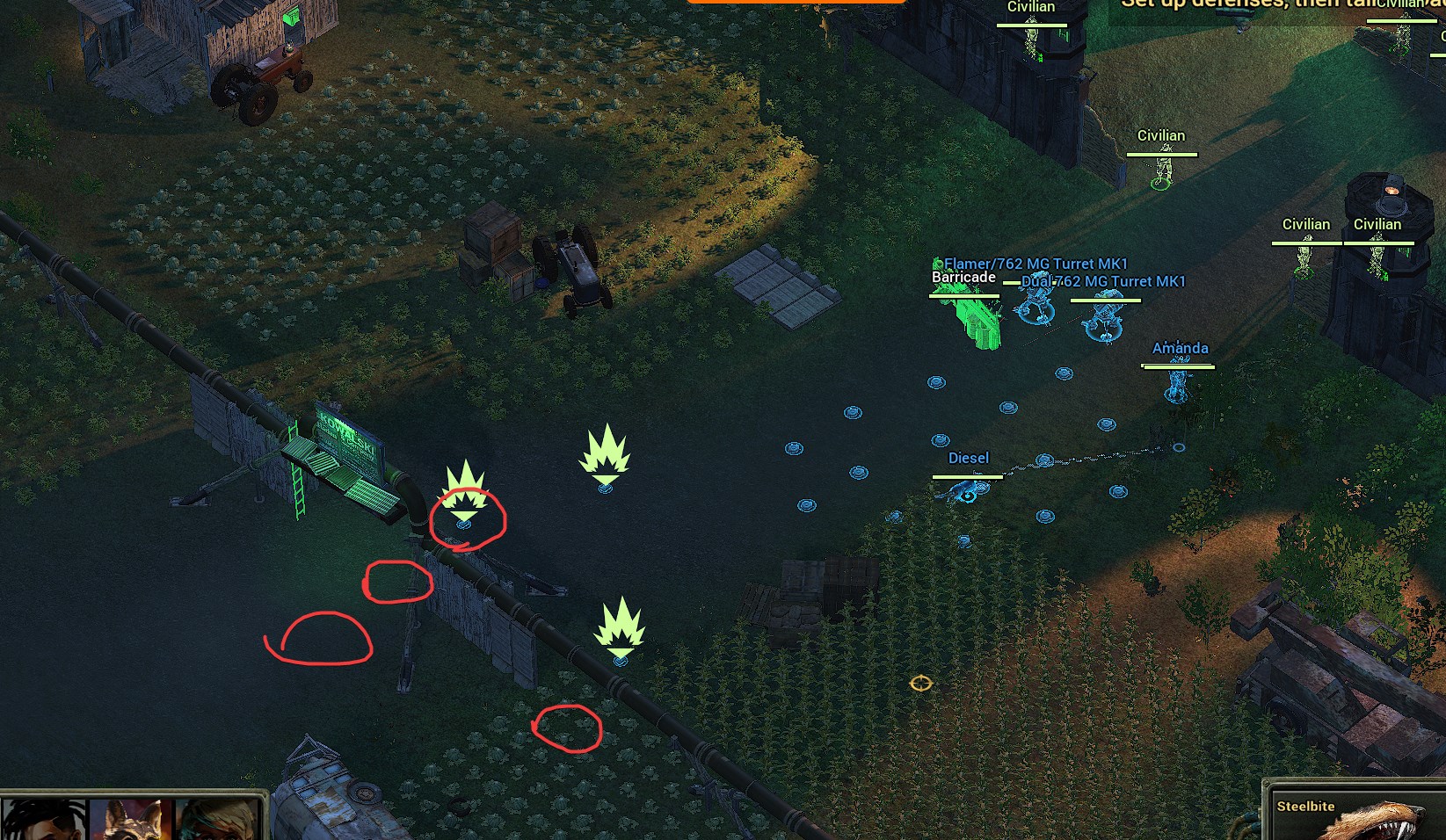 所以基本上,你的炮塔会吸收所有来自敌方的伤害,Amanda用.50cal步枪在敌方狙击手和机枪兵接近前解决他们。如果Amanda难以搞定狙击手,你还能手动用C4直接送他们上天。地雷和Diesel投掷的手雷也能帮你解决那些特别走运的敌人。