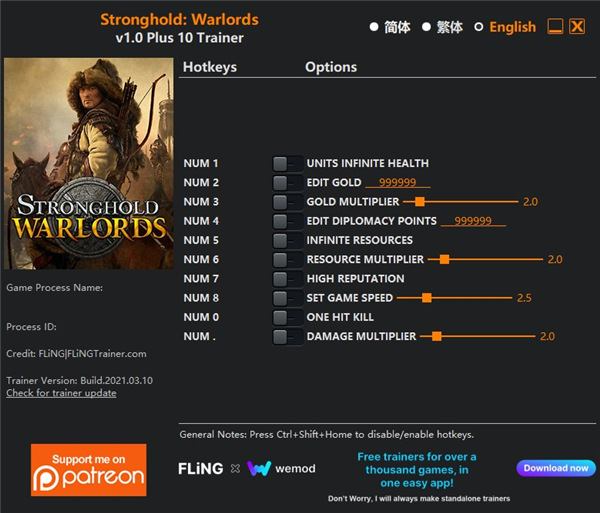 3、接着就是运行要塞军阀之战修改器风灵月影版,按照上面的按键功能,就是相对应的功能;