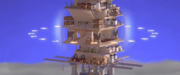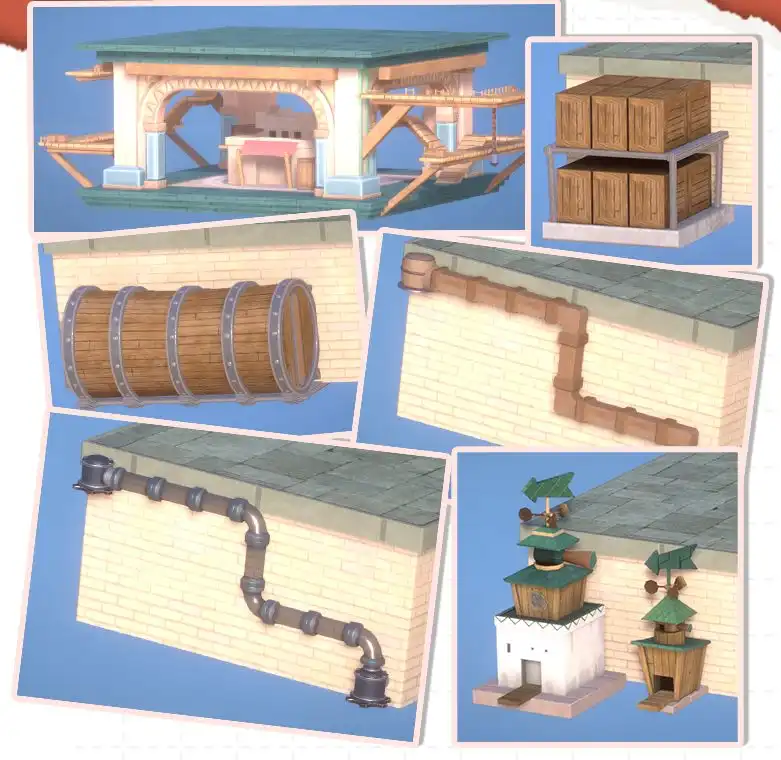 每层塔楼独立储存物资,利用人力搬运、管道运输、热气球转运、大力士抛举…高效调度物资,打造贯通塔身的纵向物流。
