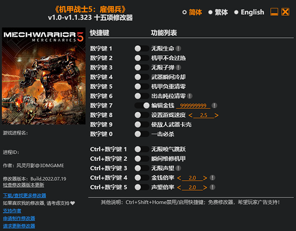 5、后“编辑金钱”生效条件改变,在打开机甲、合约、星图菜单时生效。