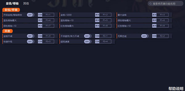 F1+1开启金钱/卷轴修改F1+2金钱+5000