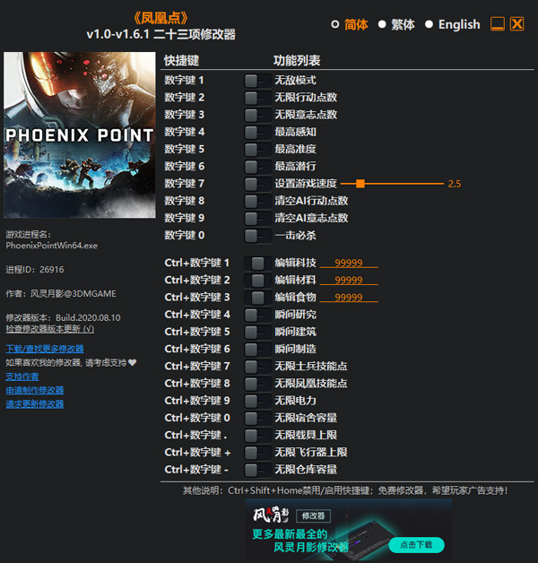 凤凰点二十三项修改器键位功能