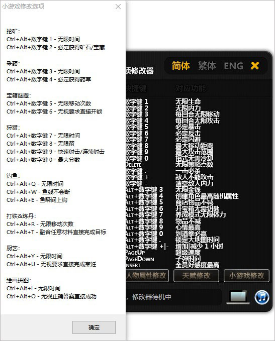 除此之外,还有允许对游戏中各种小游戏进行修改,例如钓鱼中可以修改无限时长、鱼线不会断、鱼能够瞬间上钩等;