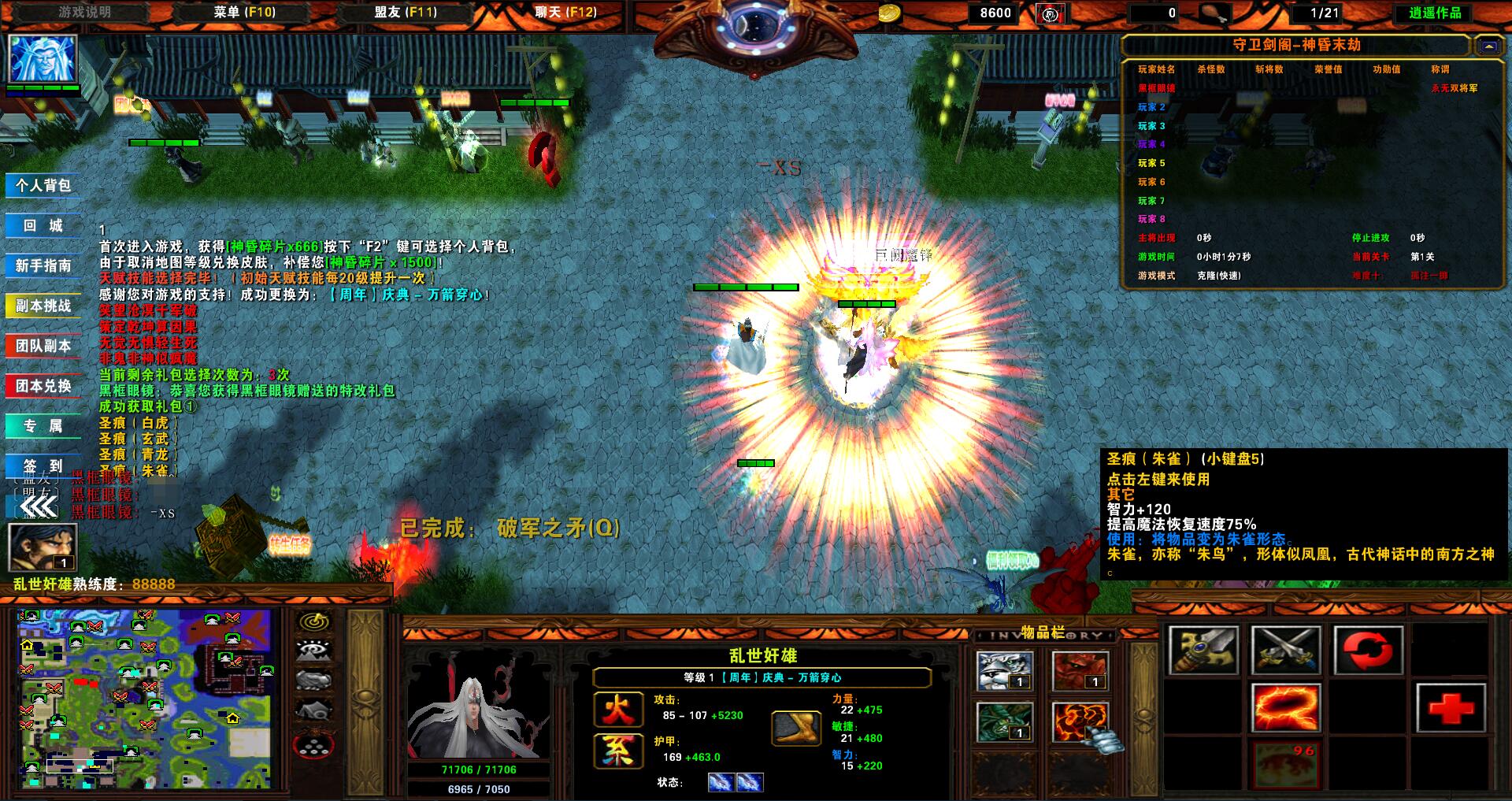 守卫剑阁神昏末劫0.13.0e正式版是一款魔兽非常经典的魔兽防守地图,地图的灵感来自与三国时期魏国入侵蜀国在剑阁发生的战争,玩家在游戏中将作为蜀国中的一员,抵御魏国进攻成功防守剑阁。守卫剑阁系统一直都是玩家非常喜欢的地图,发展到现在已经衍生出了许多不同的类型和挑战模式,本站为大家提供的是神昏末劫版本,也是目前最受玩家欢迎的版本之一。守卫剑阁神昏末劫0.12.3D本次版本的更新没有增加什么新英雄、新模式等东西,主要是对上个版本一些人物技能和副本之间调整,另外重做了影舞技能效果。