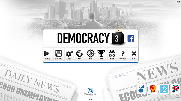 民主制度3(Democracy 3),也称为民主3,这是一款模拟政治策略类游戏。玩家将在游戏中扮演一个总统、一个财政部长,需要承担许多任务和责任,将面临犯罪、失业、债务、恐怖主义等情况,需要做出针对性的决策。玩家需要在任职期间让大多数选民对当前状况满意以便在任期结束时再次通过选举,如果选民对当前统治不满意,玩家将会让步给另一位候选人。