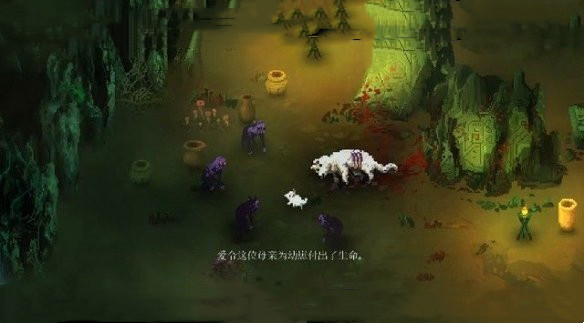 在蛛丝洞中可以找到一只受伤的白狼,旁边是已经奄奄一息的母狼,它们正在被怪物围攻,击败怪物,解救小白狼,这是一处比较重要的事件
