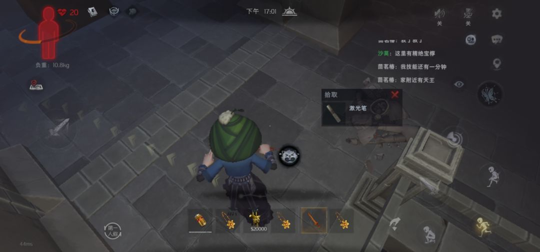 5、假人:会伪装成队友,队友开过麦也会有队友说过的话,假人只会抓你正面,不要正对着它就行,可关门杀高低杀(没有东西站可跳罐子上甚至跳假人头上,a两下后撤一步轻松平地无伤杀死,需注意假人杀人后,须找到被寄生假人将其砍死才能救活你队友)