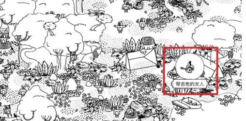 左下角最下方有一处地方有很多停留的鸟,多点击几次让鸟儿飞开,会露出一个人,点击这个人即可