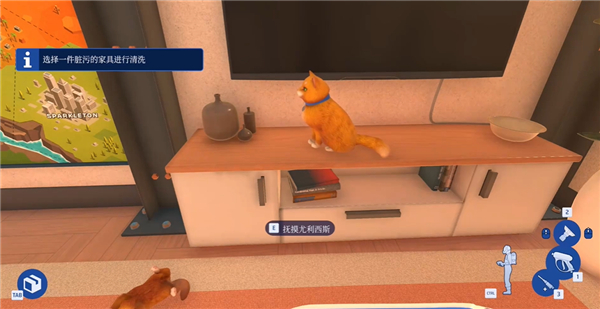 冲就完事模拟器2游戏场景中还有小猫咪以及各种角色摆件,玩家可以抚摸猫咪进行互动。并且,由于多人清洁模式采用多屏同时进行,因此玩家可以看见其它玩家一起清理的画面!