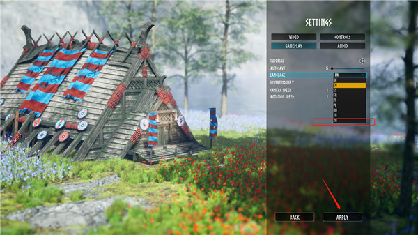 3、在语言一栏中选择ZH选项,在点击右下角应用按钮即可切换为简体中文语言