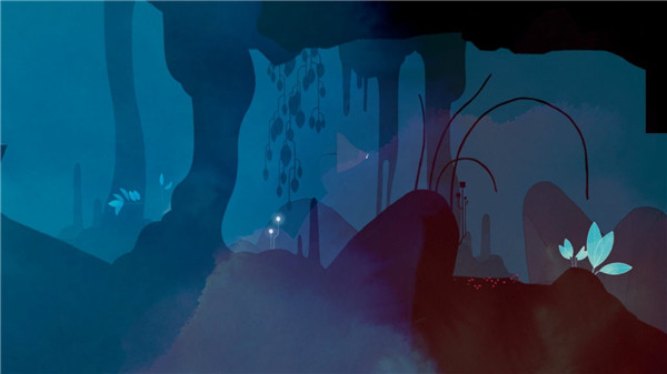 从最初灰白无物的旷野、夕阳下红沙漫天的荒漠,再到幽暗静谧的海洋世界,每一处都不乏细节上的精雕细琢。随着游戏由远及近、由近及远的镜头轮转,穿梭在这些世界之中竟有种目眩神迷的奇妙体验。当然,与同类型的《风之旅人》一样,《GRIS》也在章节各处安排了一些情感宣泄的高潮来触动玩家的内心。而通过每一次的情感宣泄,优秀的美术强化了游戏的代入感,将我们带入到了游戏世界中,这便是互动叙事的高明之处。