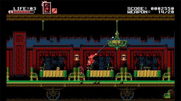 血污:月之诅咒(Bloodstained: Curse of the Moon)是2015年Kickstarter承诺众筹游戏《血污:夜之仪式》达到一定目标后制作的一款游戏 。价格980日元 。由ArtPlay制作、INTI CREATES发行。类恶魔城的2D横版动作游戏《血污:夜之仪式》还未发布,这里先为大家带来官方推出的8bit风格小游戏《血污:月之诅咒》(Bloodstained: Curse of the Moon)。游戏世界观和原作相同,为玩家提供了4名可玩角色,拥有不同的武器和技能;本作画面和玩法都和初代《恶魔城》相似,推荐给喜欢复古游戏的玩家。本作故事的发生时间在“夜之仪式”的10年之前,主人公是一名使用日本刀的退魔士“斩月”,除此之外还有三名角色可供玩家控制,他们分别是使用长鞭战斗的“夜之仪式”女主Miriam,炼金术师Alfred以及能变身蝙蝠的Gebel。每名角色都有各自独特的攻击手段和动作特点,剧情发展到一定阶段后能够自由切换,玩家需要利用他们的特性才能顺利通过关卡击败BOSS。游戏融入了许多全新的要素,比如四名角色可随时切换,不同关卡中还需要不同角色的特殊能力才能通过,例Miriam的滑铲能通过一些低矮的洞、而Gebel则可以变成蝙蝠飞过巨大的鸿沟等等。游戏中玩家可以操控东洋的退魔士斩月挑战潜伏着魑魅魍魉的恶魔之城,并且面向初级玩家提供了被攻击不会击飞、无限命的简单模式。血污月之诅咒是一款非常出色的游戏,它非常适合那些想要面对旧式挑战的玩家以及既有美学又有设计的老派游戏。