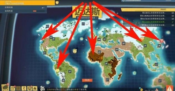 4、如下图箭头所指的就是5个目标区域,发射迈达斯到这些地方,也就是带有图标的区域