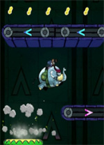 终于坏象来到了城市中心,敌人的内部,这里似乎是一个巨大的工厂。沿途用上移+冲撞干掉几只飞在空中的小机械,来到下方,这里从右边会不断传过来方形的压缩块,借助这些压缩块,跳上台子,撞击按钮,打开前面的门,自然带上路上的被困人员。