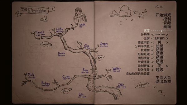 2、完美的步行模拟器,控制伊迪斯·芬奇在芬奇家族的老宅中探索,感受十数位亲人死亡前的故事